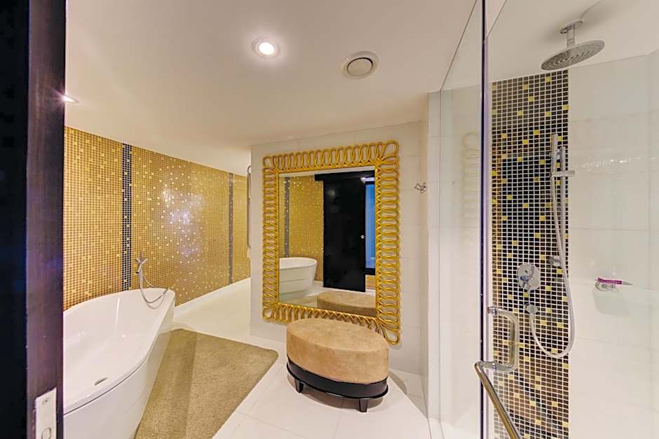 Presidential Suite is 344 square feet and includes a queen-size bed 150-154 width plus cable tv, hairdryer, ironing set, safe, bathrobes, and slippers.